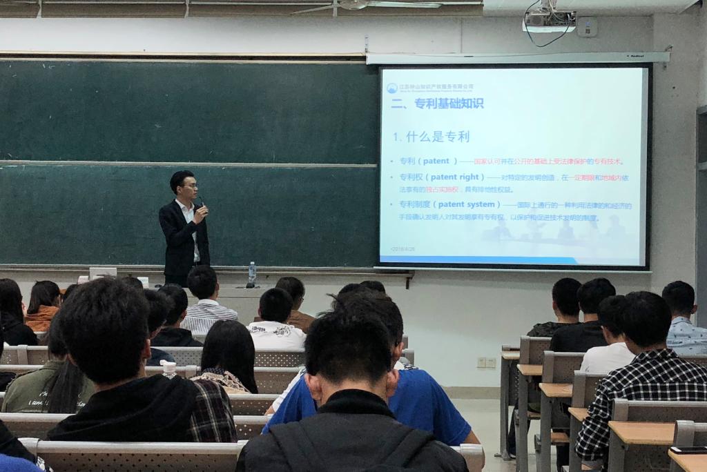4月26日下午,我校特邀江苏钟山知识产权服务有限公司王磊老师为师生开展专利培训讲座。讲座中,王磊老师通过真实案例生动地介绍了专利的基础知识、技术交底书的撰写方法、专利的挖掘等内容,在座师生受益匪浅。