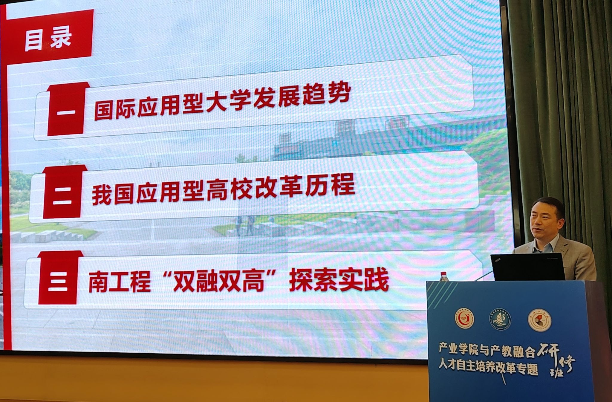 4月27日,由中国高等教育培训中心主办、常州工学院承办的产业学院与产教融合人才自主培养改革专题研修班开班,党委书记孙爱武应邀出席活动,并作题为“深化‘双融双高’,建设一流应用型大学的探索与实践”的专家主题报告。
