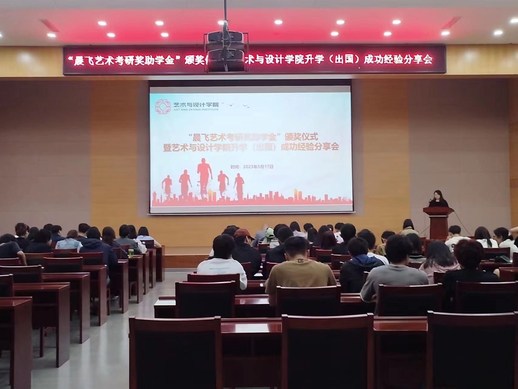 近日,艺术与设计学院“晨飞艺术考研奖助学金”颁奖仪式暨升学(出国)成功经验分享会在动漫影视厅举行,学院党政领导、南京博思晨飞艺术文化发展有限公司负责人出席活动,并为受表彰同学颁发证书。学工办老师、2023届“晨飞艺术考研奖助学金”获奖学生以及学生代表参与活动。