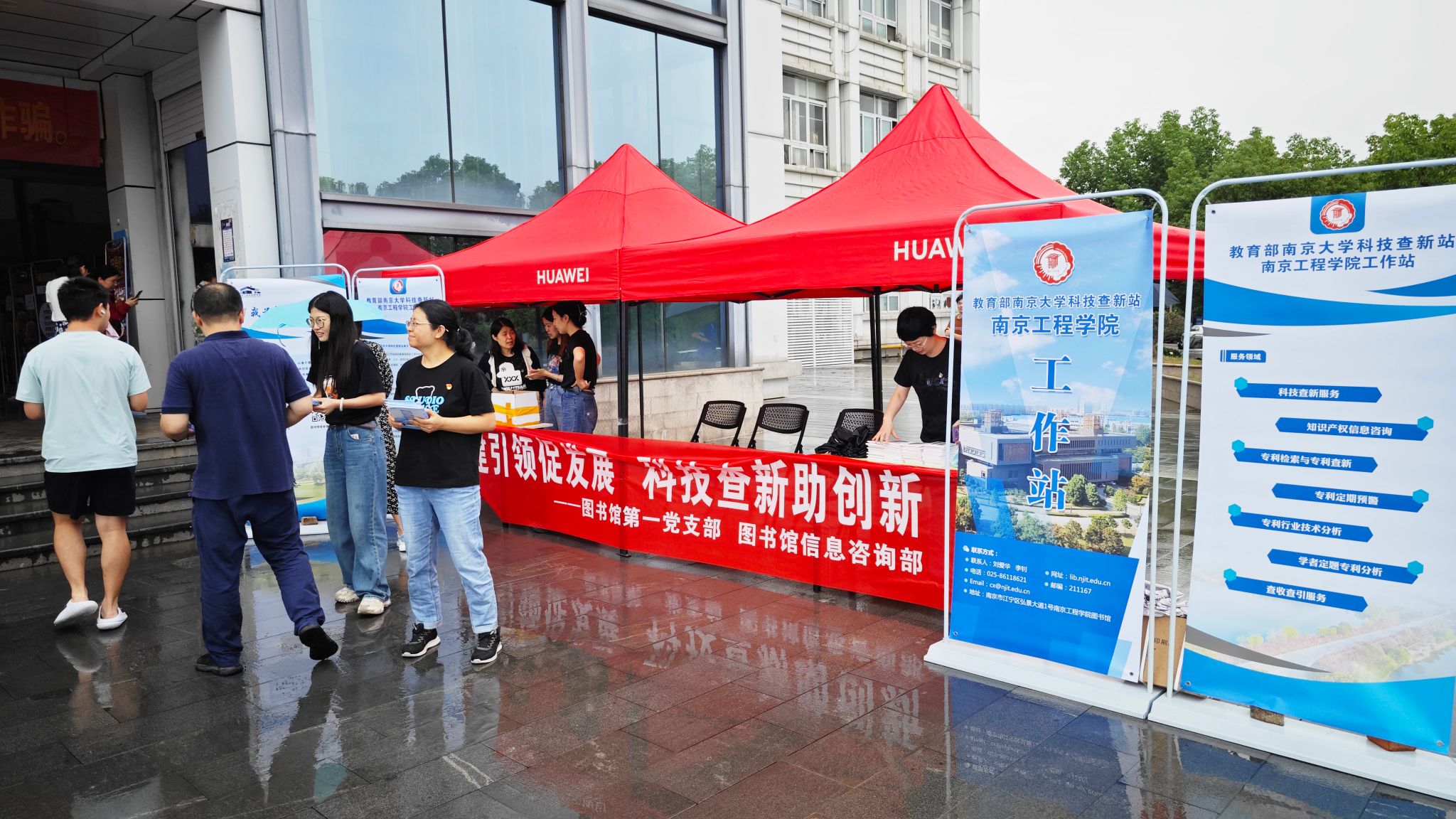 9月21日中午,图书馆第一党支部(图书馆信息咨询部)在东区餐厅门口设立宣传点,向师生们介绍一周前刚刚揭牌的教育部南京大学科技查新站凯发k8官网工作站的基本情况、相关业务内容及服务流程,现场回答师生们的咨询。
